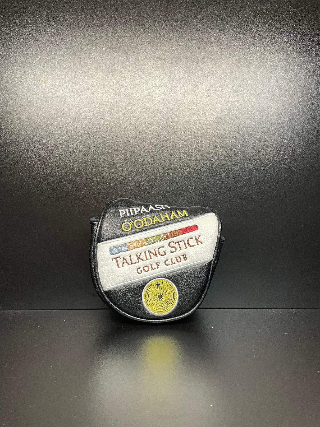 The Talking Stick Headcover is a unique and protective accessory designed for golf clubs, particularly drivers. Measuring 13 inches in length and 5.5 inches in width, it provides ample coverage to keep your club head safe. This headcover features a distinctive design inspired by traditional talking sticks, often adorned with intricate patterns and vibrant colors, symbolizing communication and storytelling. Crafted from high-quality materials and detailed stitching, it ensures durability and long-lasting protection for your club. The snug fit keeps the driver head secure, preventing scratches and damage during transport. Easy to slip on and off, the Talking Stick Headcover combines practicality with cultural significance, adding a touch of heritage and artistry to your golf bag.