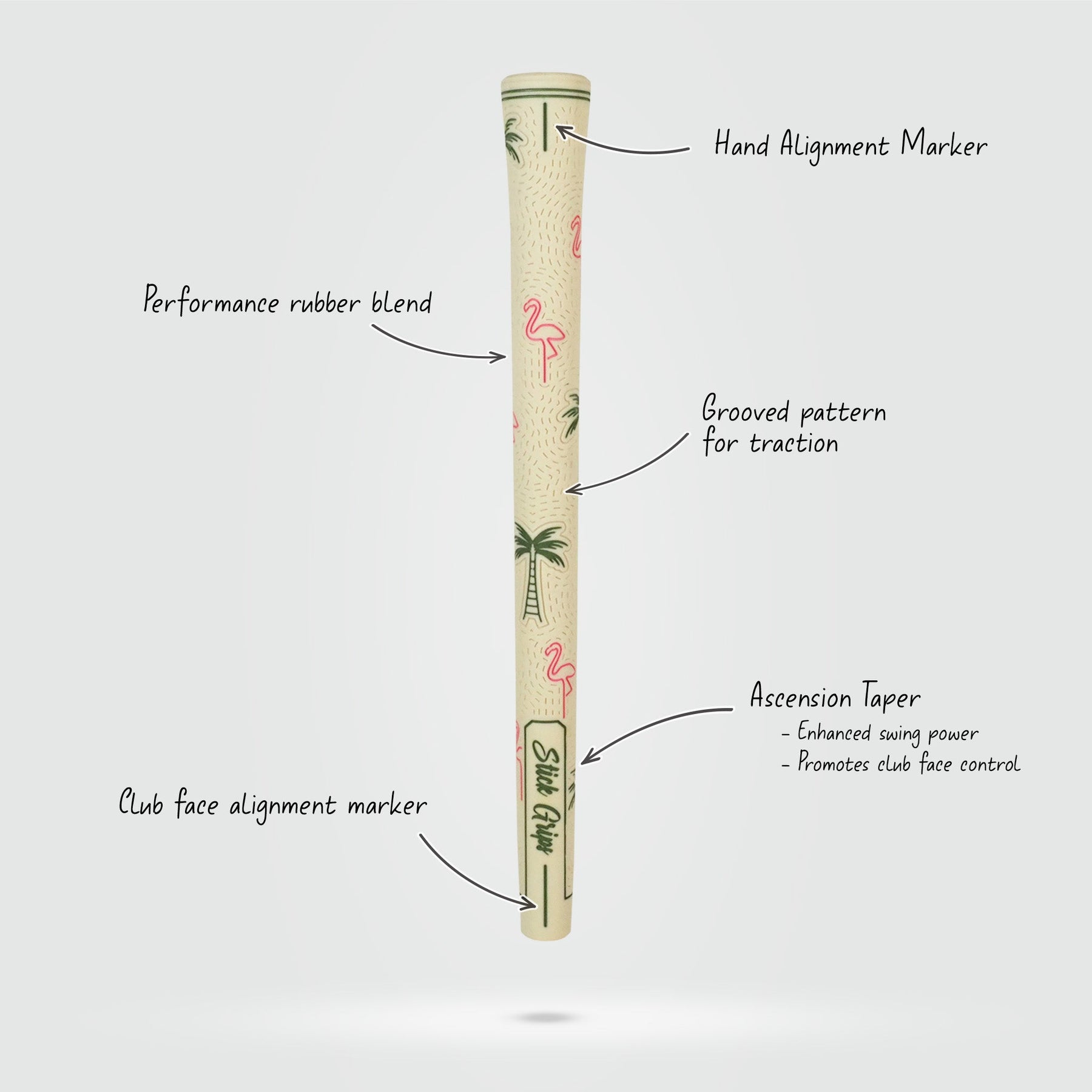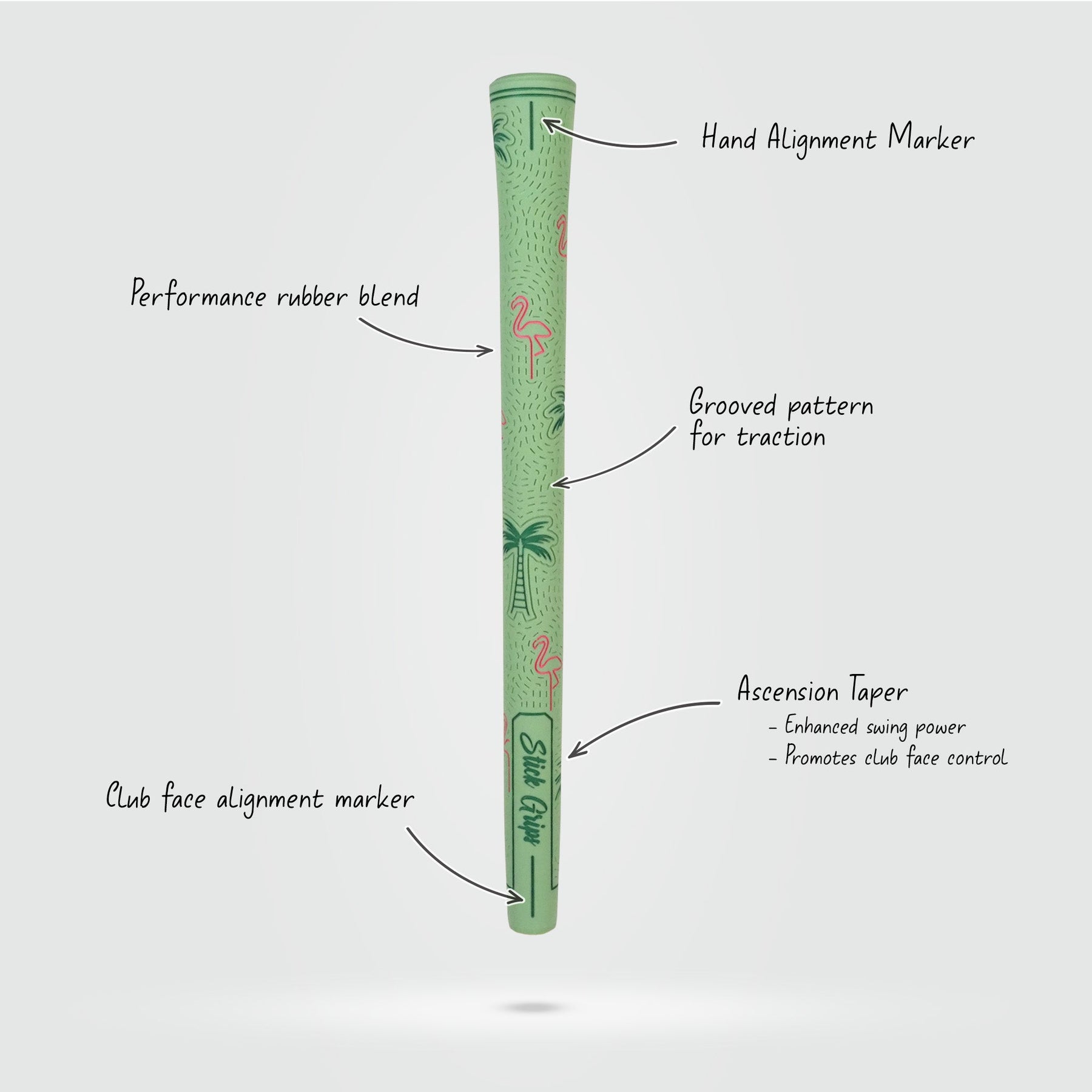 We promise quality, comfort, fit and style and we put that in our Palm Swings golf grips. The grooved texture through out the grip combined with our performance rubber blend offers a premium grip in all conditions. The thicker lower handle not only provides a premier level of comfort, but enhances your game. Enough about performance. You will look real good too.