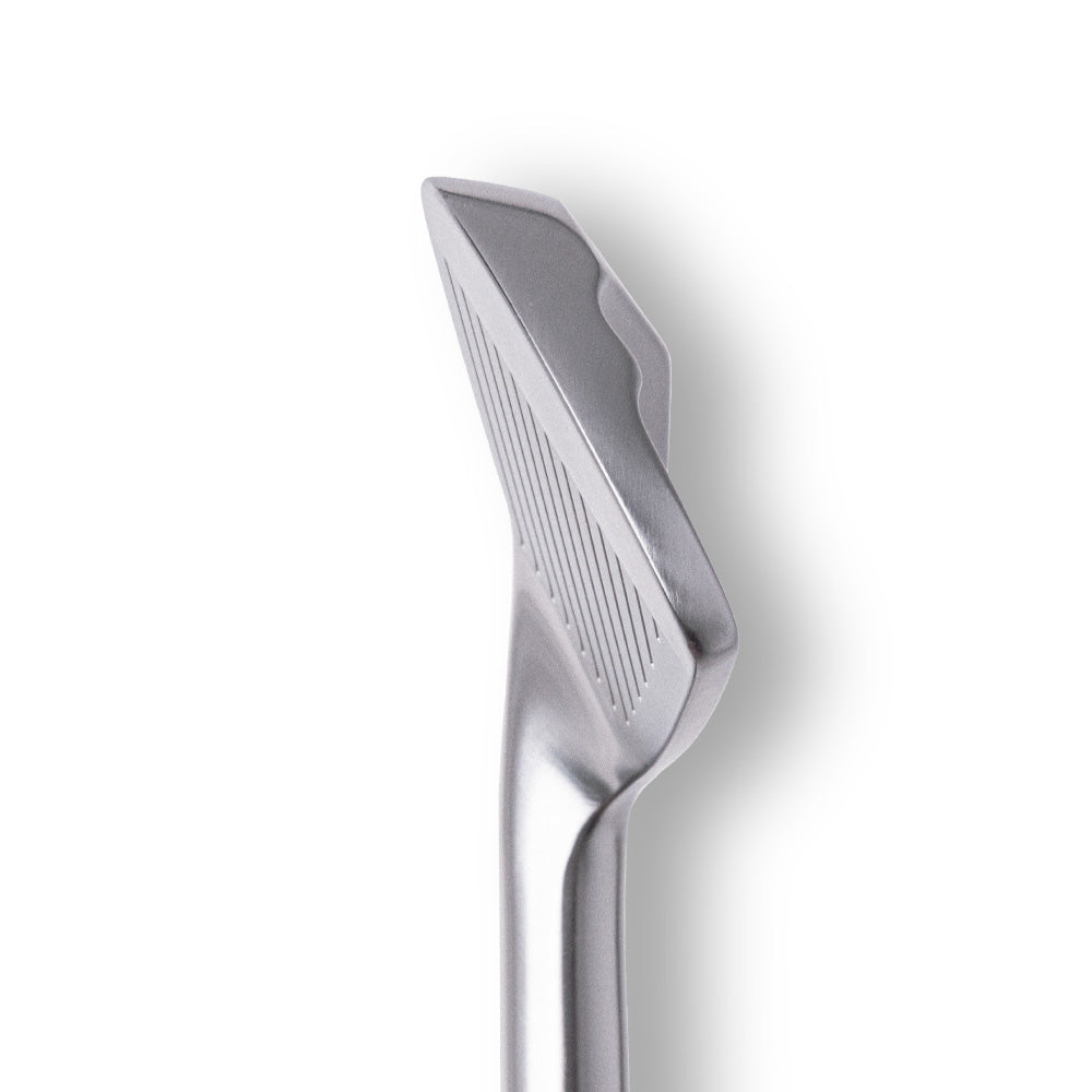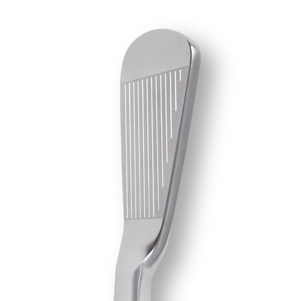 The unique shape and weight distribution on the back of the head optimizes the center of gravity position for each iron. This revolutionary club head design, seen most notably with the toe grind, also promotes a return to square at impact, benefitting all golfers.