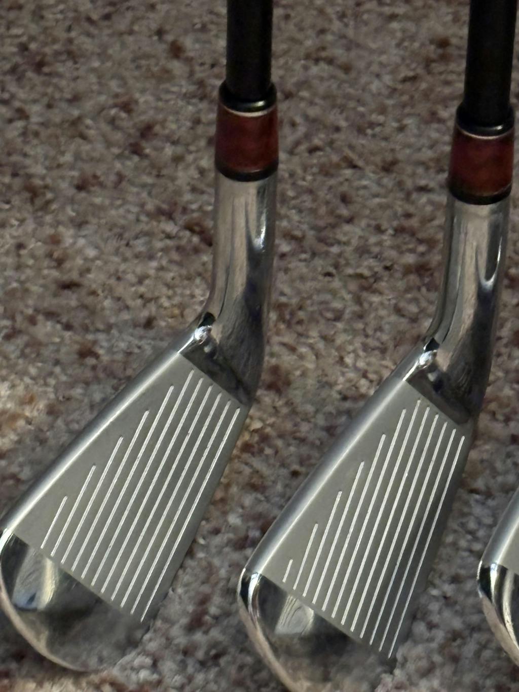 Completed rebuild of my favorite set of irons with the red carbon weave ferrules from The Golf Trader, just wanted to share the end results. Thanks again, I am pleased with the finished look, and ferrules fit nicely and for my set did not need a large amount of turning down.